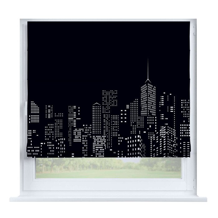 Римская штора на створку «Ночной город», карниз верёвочный